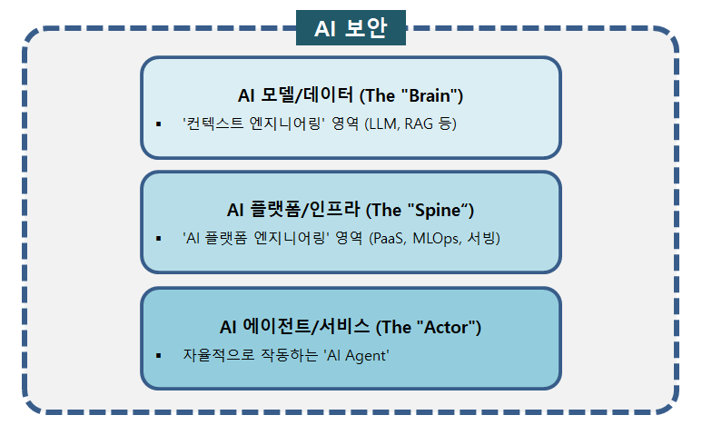 - AI 모델/데이터 (The "Brain"): '컨텍스트 엔지니어링' 영역 (LLM, RAG 등)
